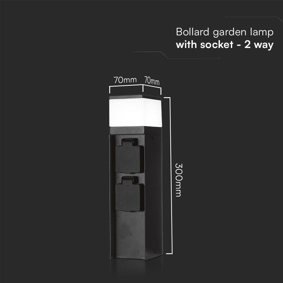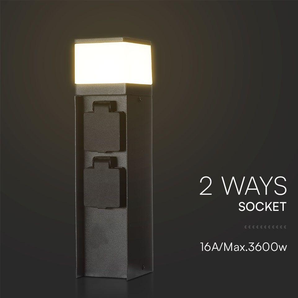 Aumenta quantità per PALETTO CON LUCE E27 MAX 11W E PRESA 2X DA GIARDINO IP44 16A