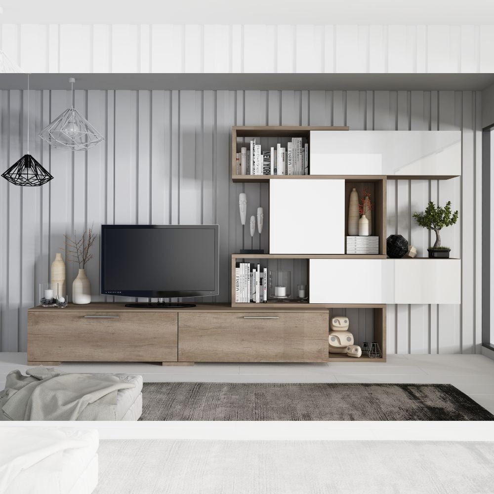 Diminuisci quantità per Parete attrezzata 8016 reversibile struttura rovere e frontali bianchi