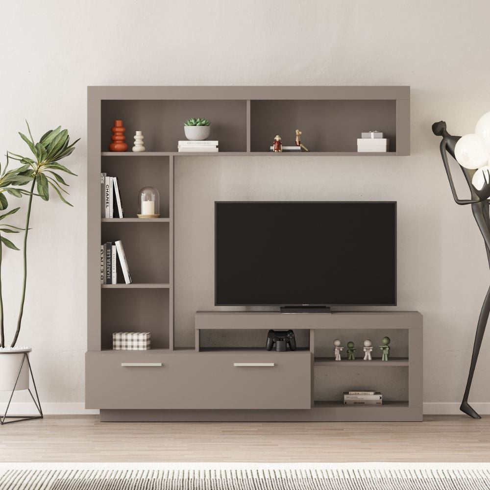 Parete attrezzata Leo con nicchia a giorno e anta a ribalta colore tortora