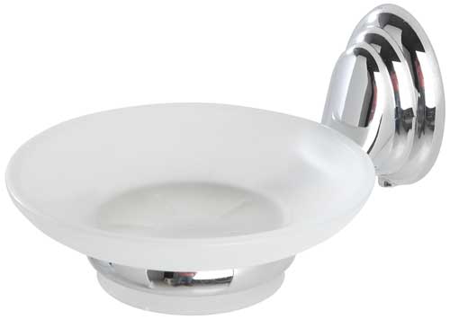 Portasapone in acciaio cromo/vetro satinato,piastrine antiruggine.