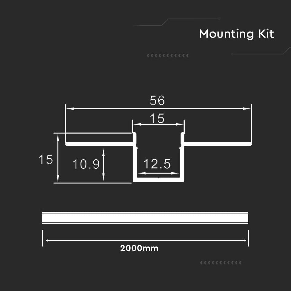 Aumenta quantità per PROFILO IN ALLUMINIO CON DIFUSORE PER STRISCE LED 2000*55*15MM CORPO D ARGENTO