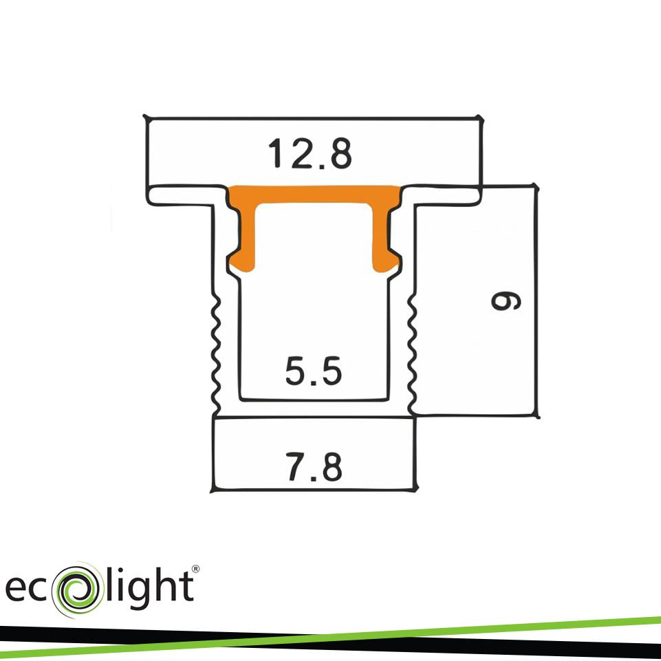 PROFILO PW02 DA INCASSO, NERO + PARALUME OPALINO, 2MT