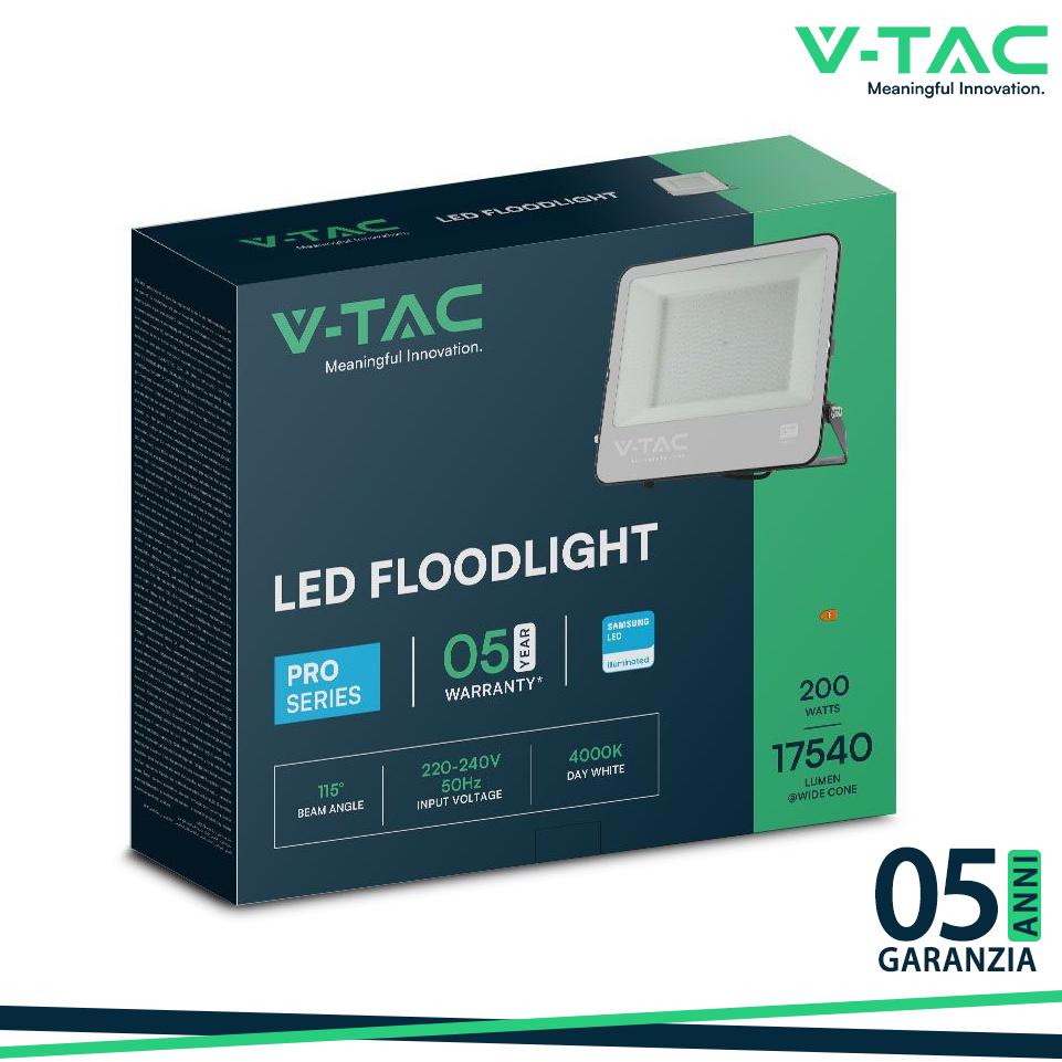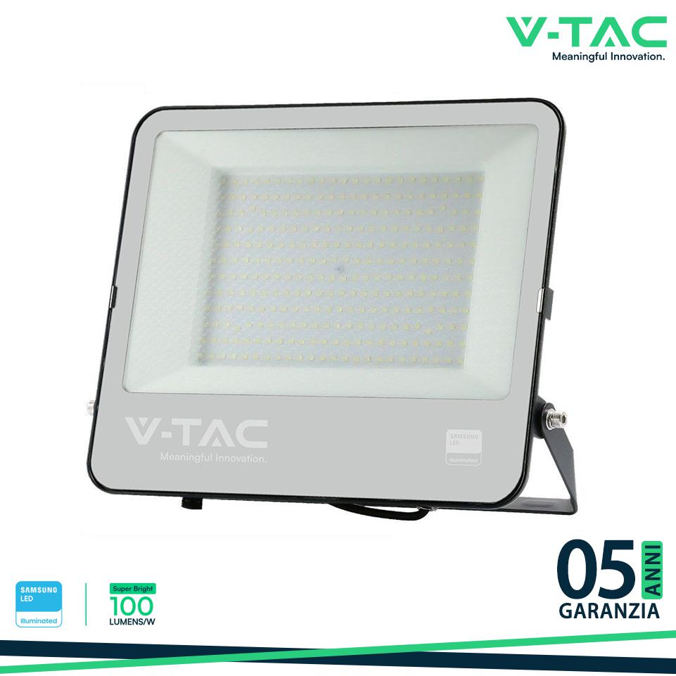 PROIETTORE LED 200W SMD SAMSUNG CHIP 1M CAVO CORPO NERO VETRO SMERIGLIATO GRIGIO 6500K
