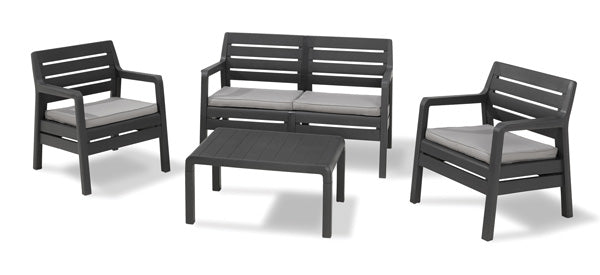 Salotto delano set grafite con cuscini 100% polipropilene.