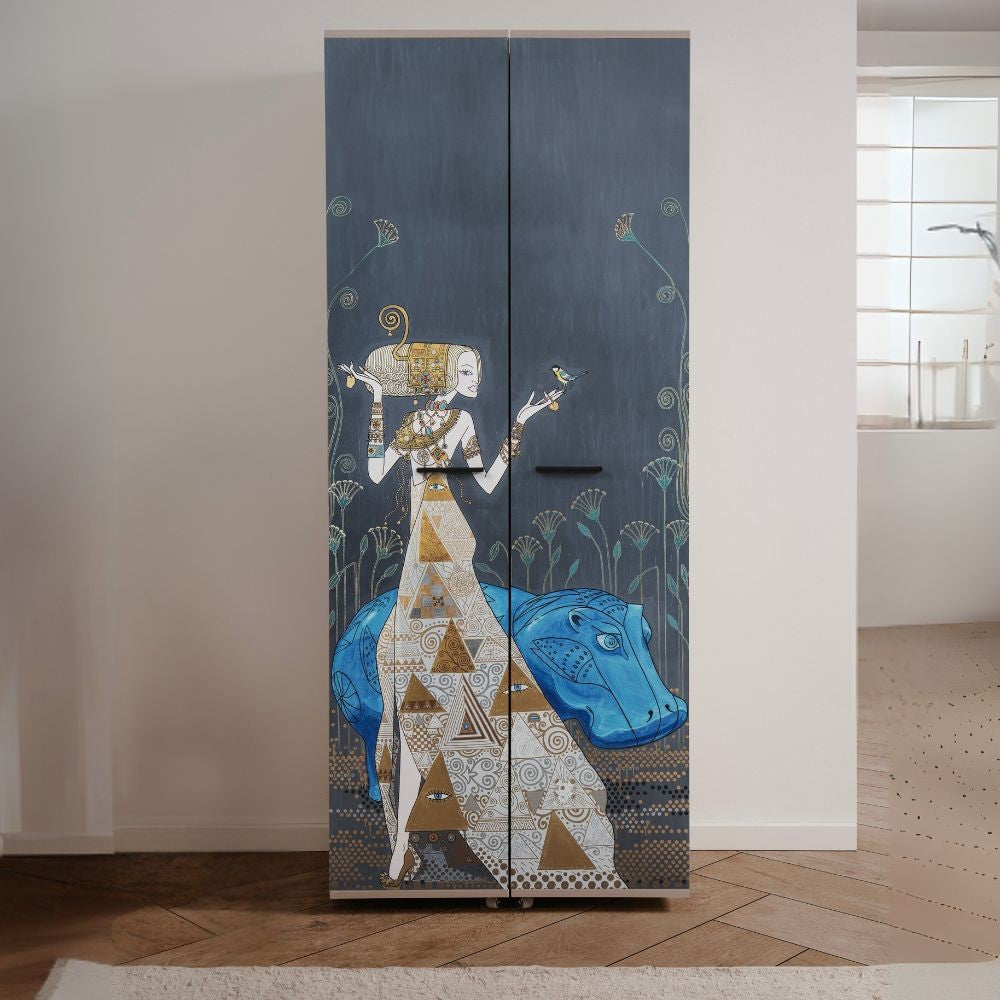 Scarpiera Hippo 02A con due ante battenti decorate by Mauro Bergonzoli e 15 ripiani interni
