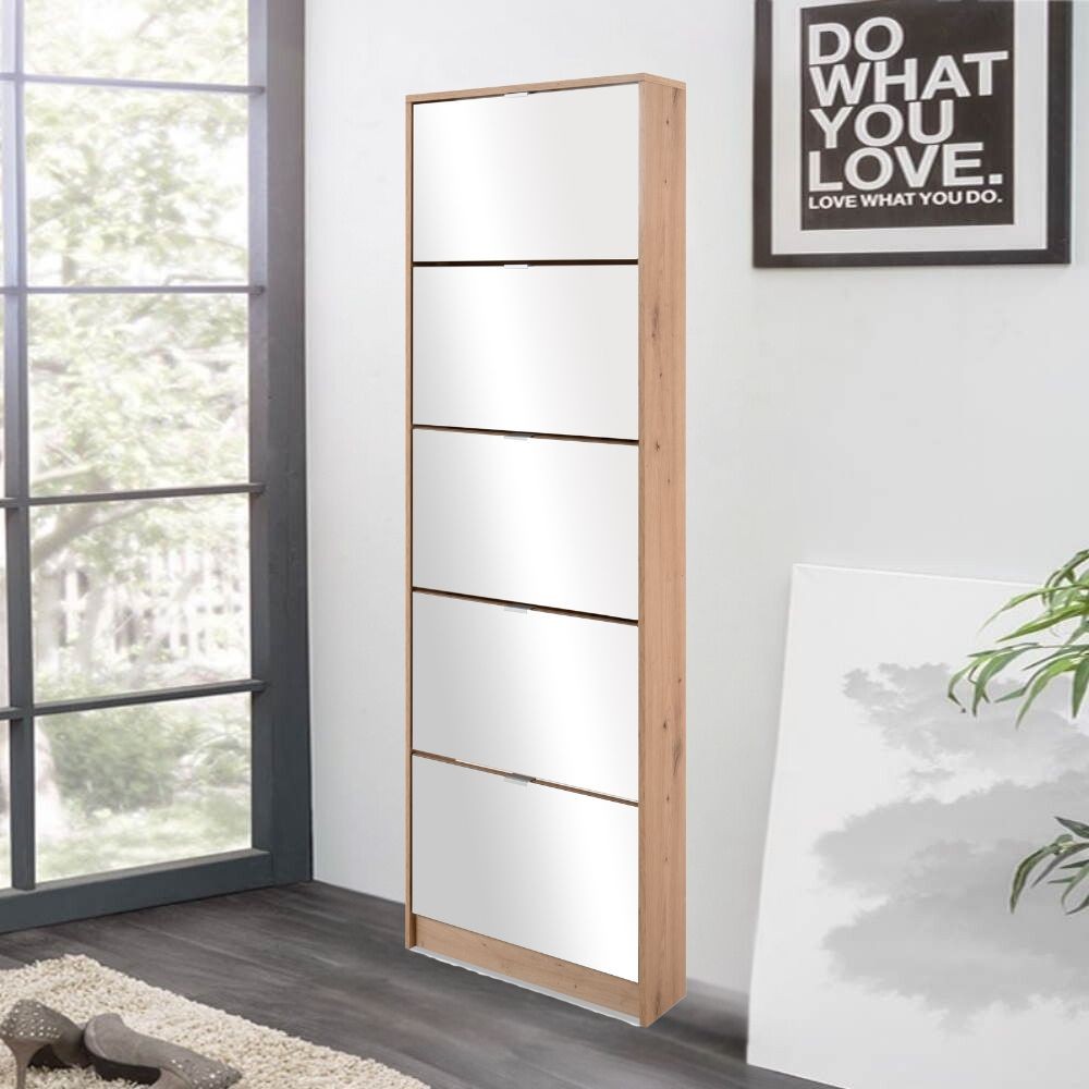 Scarpiera Koblenz con 5 ante a specchio colore quercia