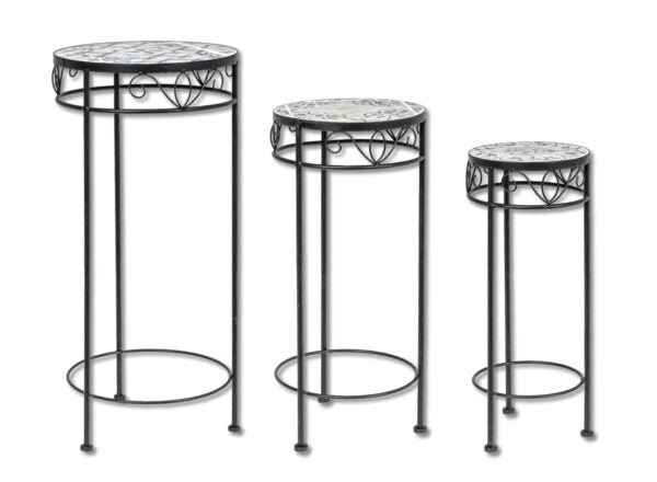 Set 3 tavolini erice, ferro/ceramica cm. d.20x51 / d.25x57 / d.30x68