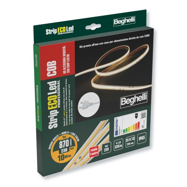 Aumenta quantità per Strip Led COB 1m 230v 10W IP65 3K 870 Lm
