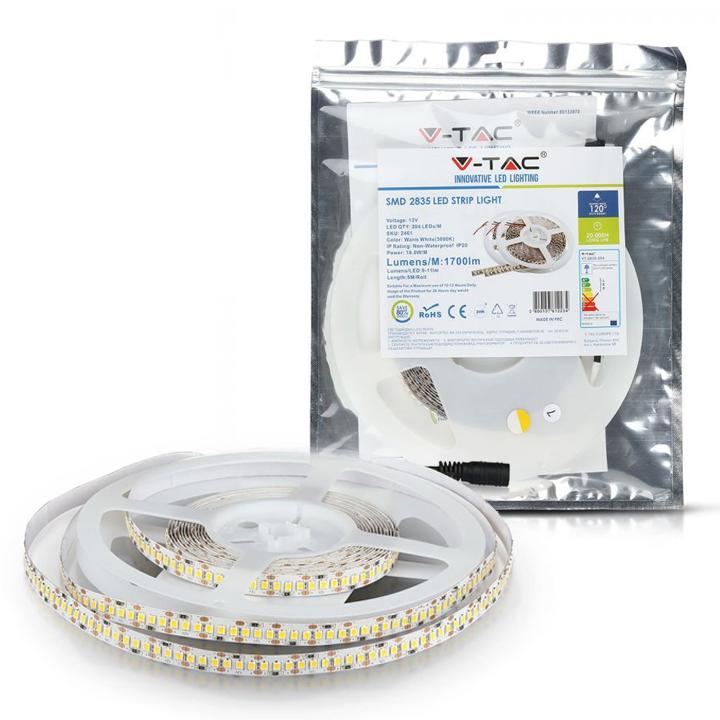 STRISCE LED SMD2835 - 204 LEDS BIANCO CALDO IP20 3000K