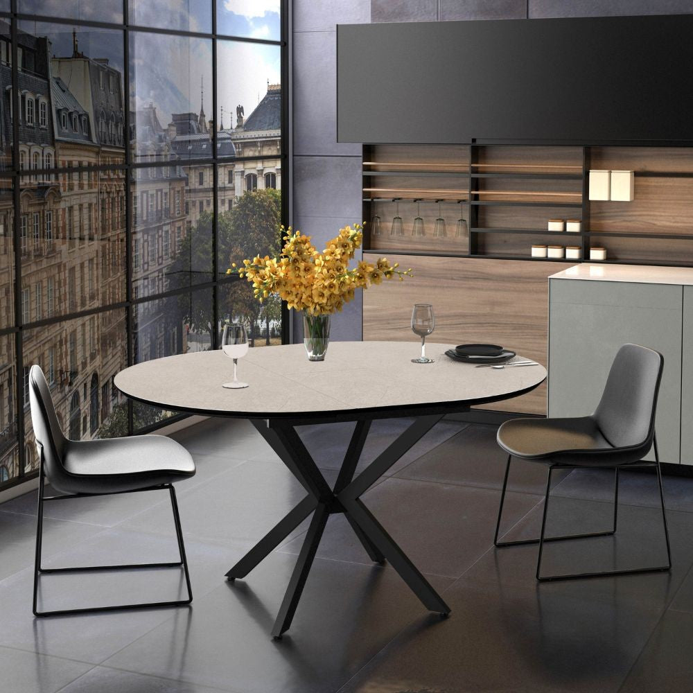 Aumenta quantità per Tavolo allungabile Dobok con allunga 34 cm colore piano colore cashmere e gambe in metallo nero