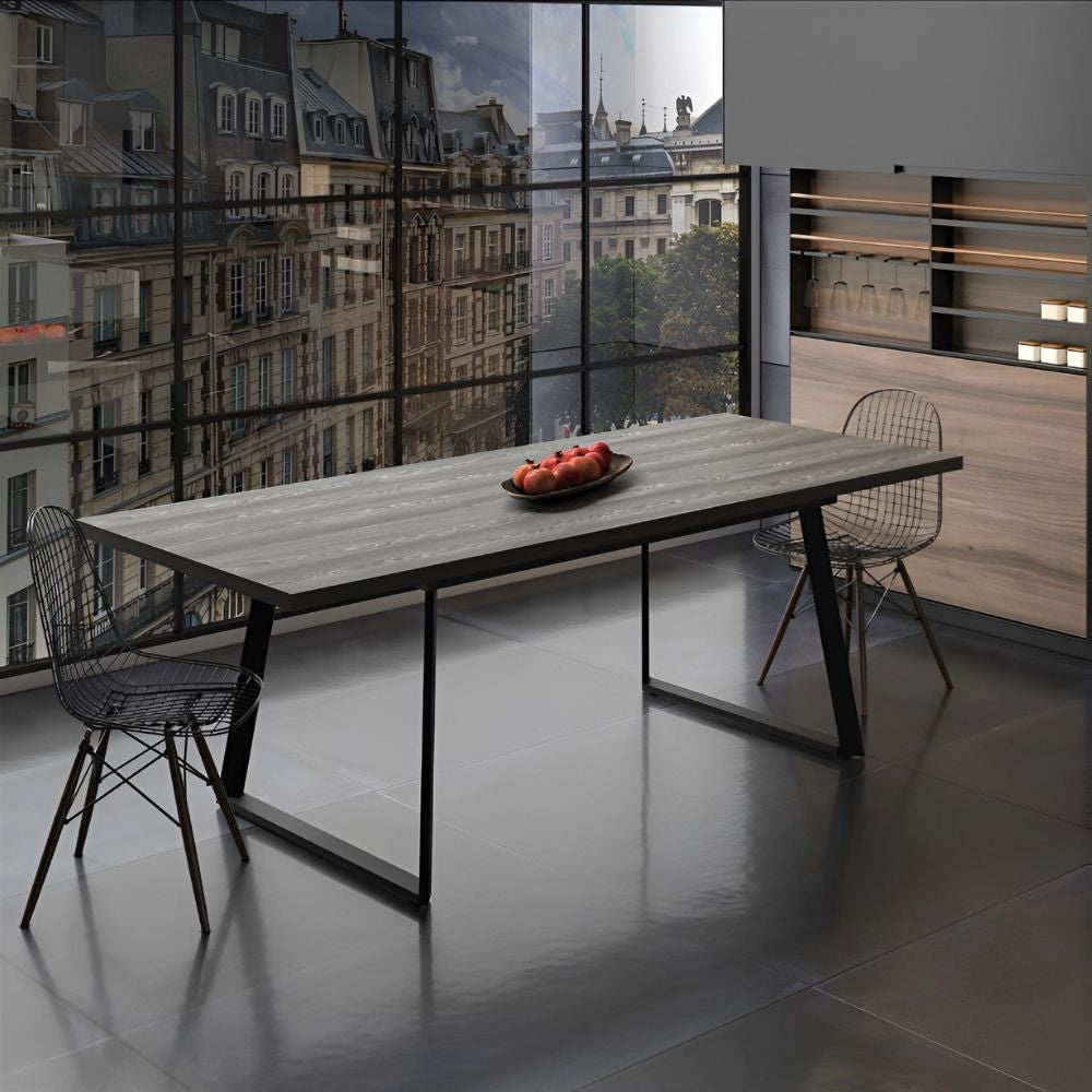Tavolo allungabile Lavinya piano larice grigio e gambe in metallo nero