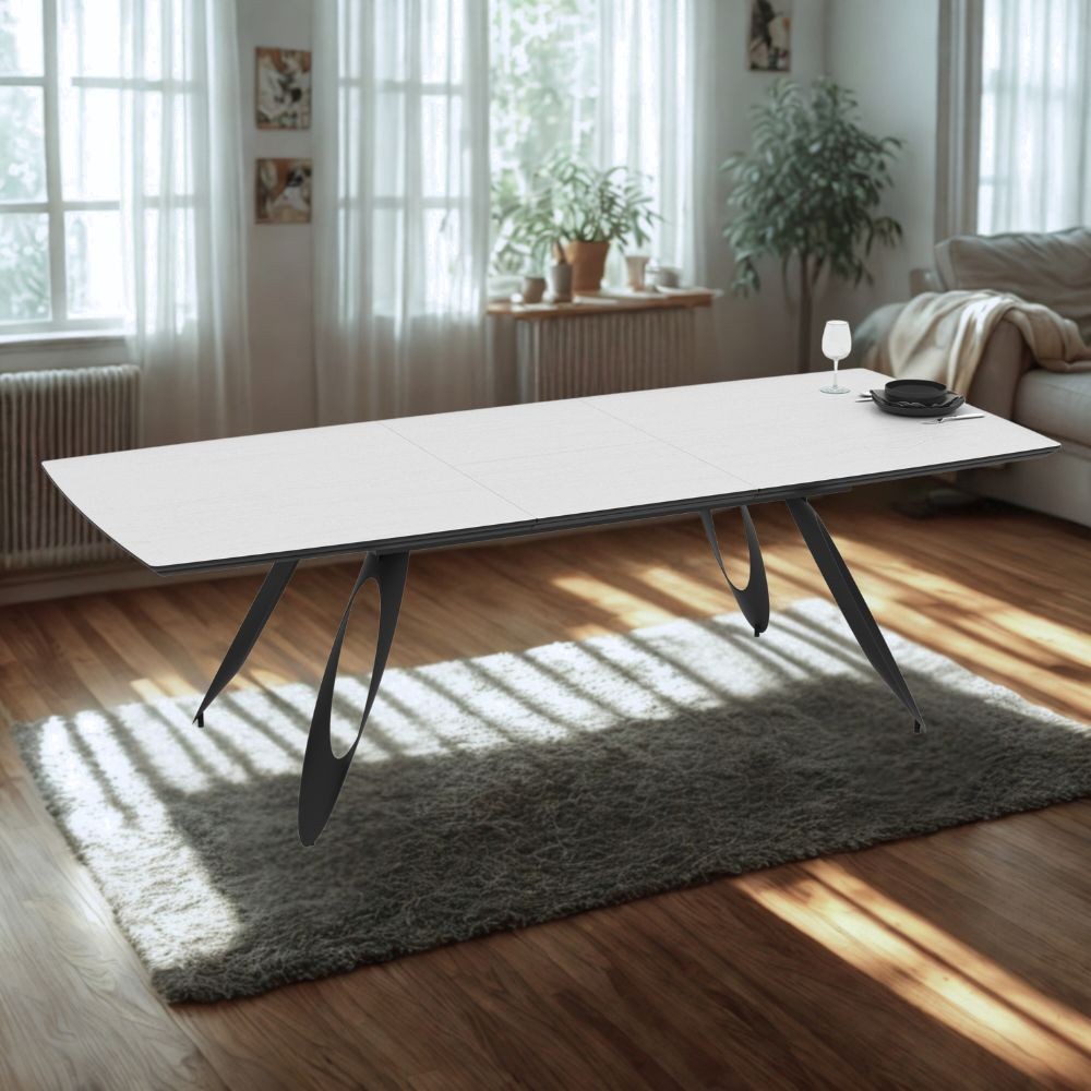 Tavolo allungabile Merkur con top bianco frassinato e gambe colore nero