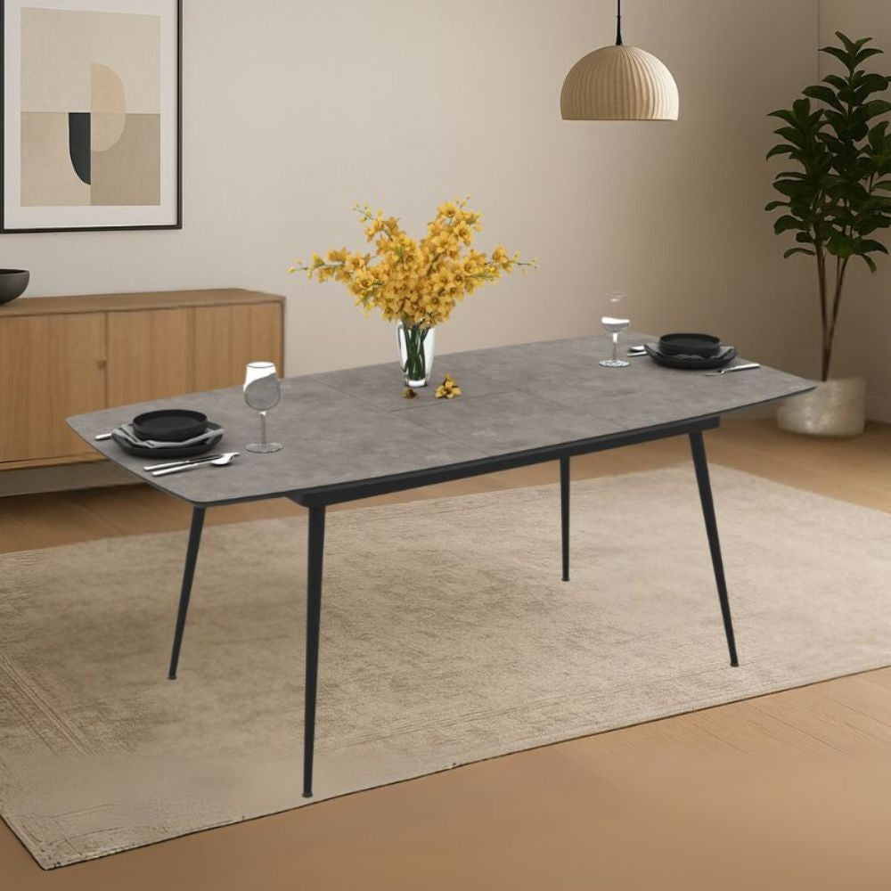 Tavolo allungabile Yense con piano colore cemento e struttura in metallo nero