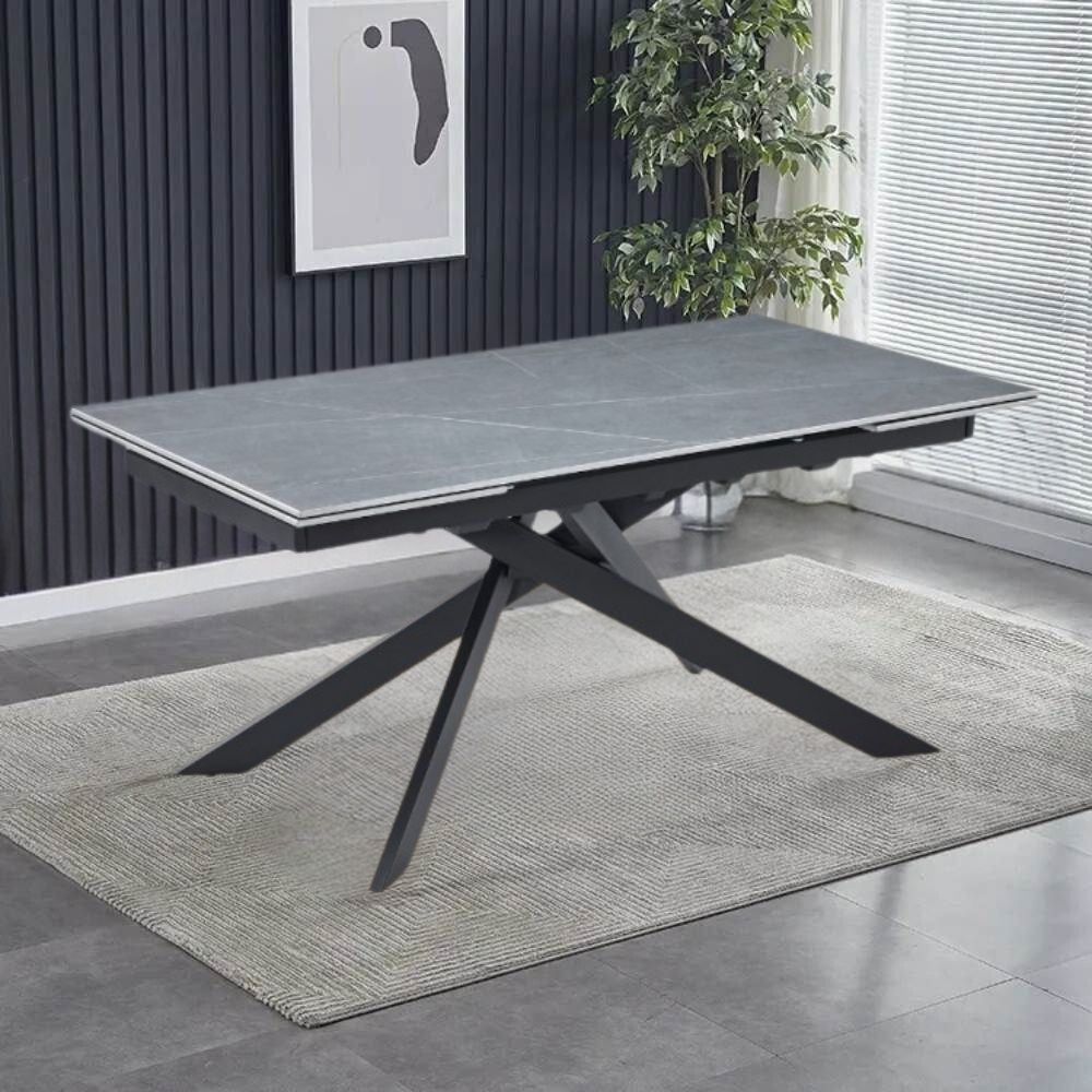Tavolo rettangolare Mariage in ceramica effetto marmo grigio cemento opaco con gambe in acciaio nere