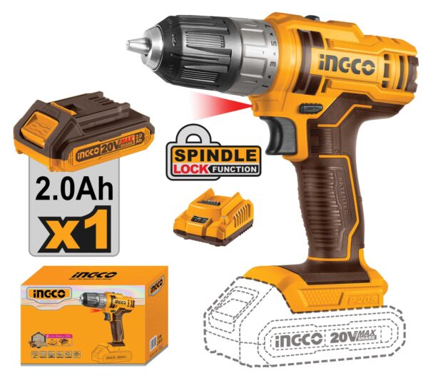 Trapano 20V c/1 batteria da 2.0ah+caricabatterie