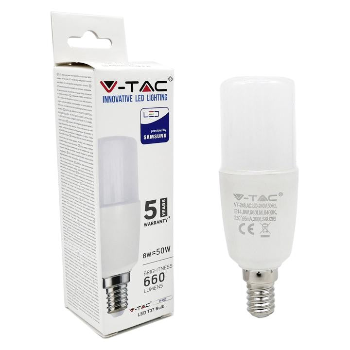 Aumenta quantità per VT-248 PLASTIC BULB 8W 3000K E14
